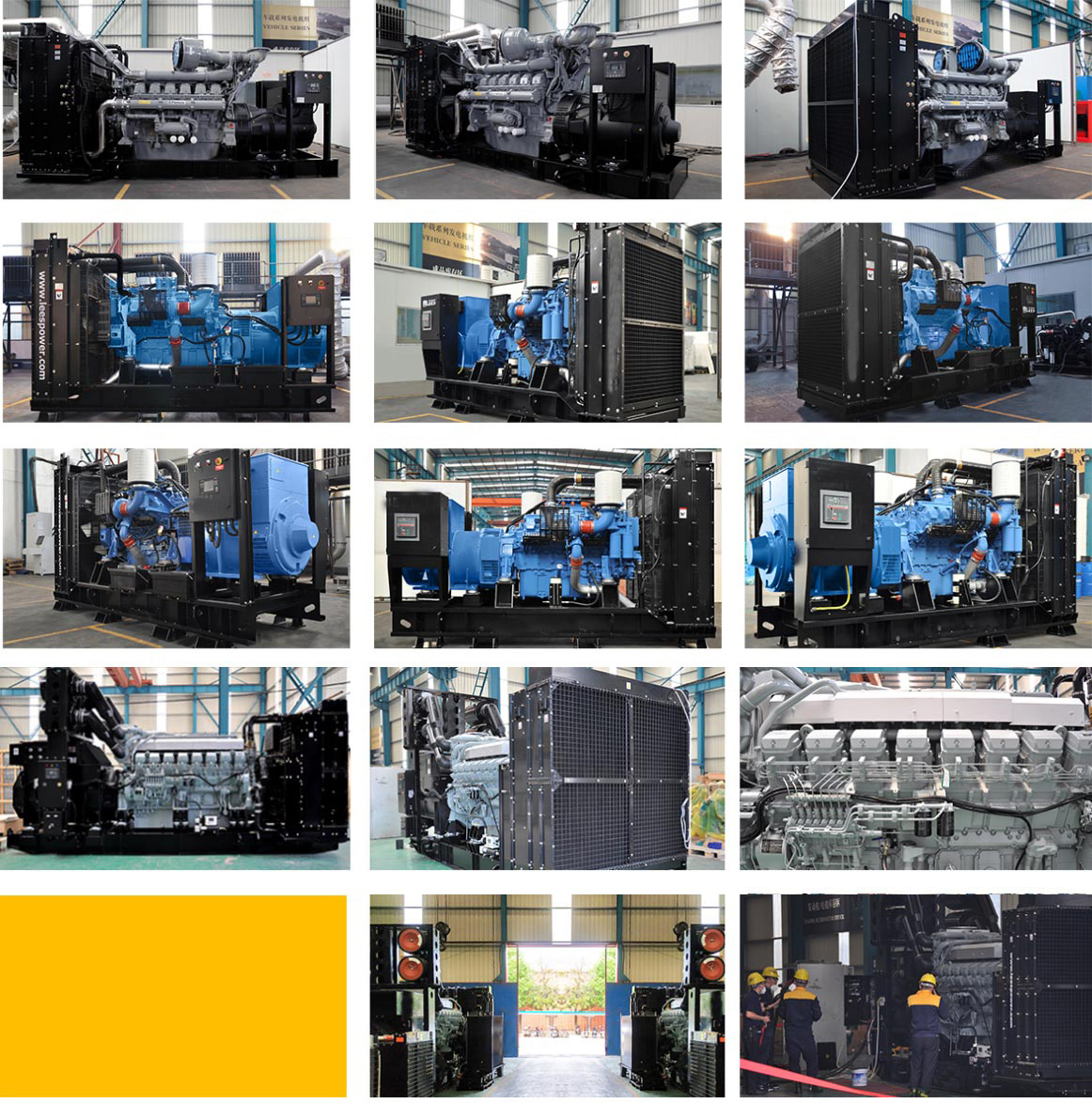 能电一直矢志不渝的专注于柴油发电机组的改革和创新,能电提供的柴油发电机组,功率从8kVA到4000kVA,机组类型包括开架式、静音式、拖车式、车载式、集装箱式、高压机组、并联机组等。